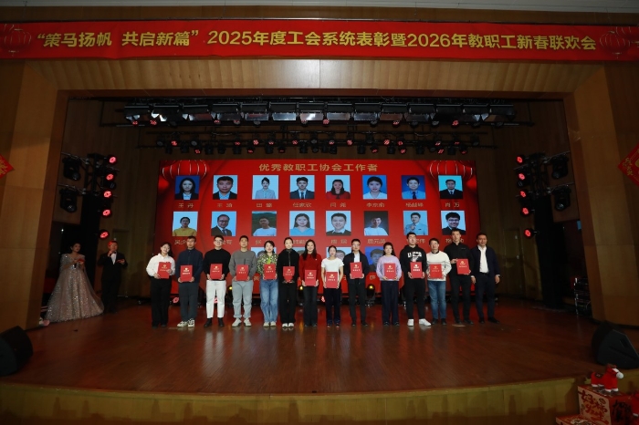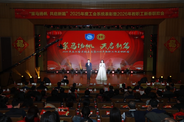 为深入贯彻落实习近平总书记关于工会工作重要论述精神以及学校第十二次党代会精神,积极响应学校第七届教代会、第十五届工代会号召,表彰先进典型,凝聚奋进力量,共迎甲辰马年新春,传递“教工之家”的深切温暖,1月21日,由校工会主办的“策马扬帆 共启新篇”2025年度工会系统表彰暨2026年教职工新春联欢会举行。校领导雷涯邻、赵志丹、刘伟、林善园、段翔、多宏宇出席活动,与五百余名教职工欢聚一堂,共襄盛会。