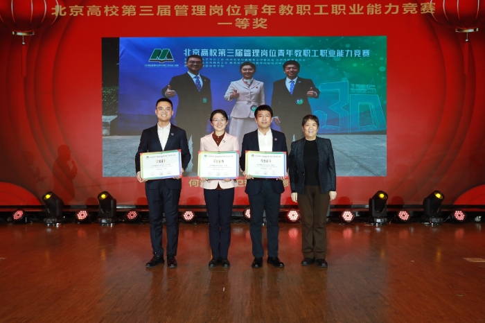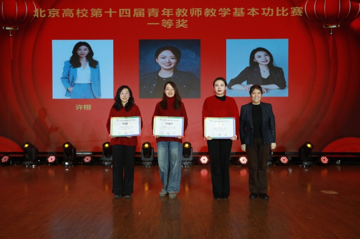 为北京市青教赛一等奖许栩、王琳、张晋颁奖