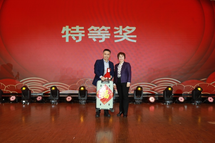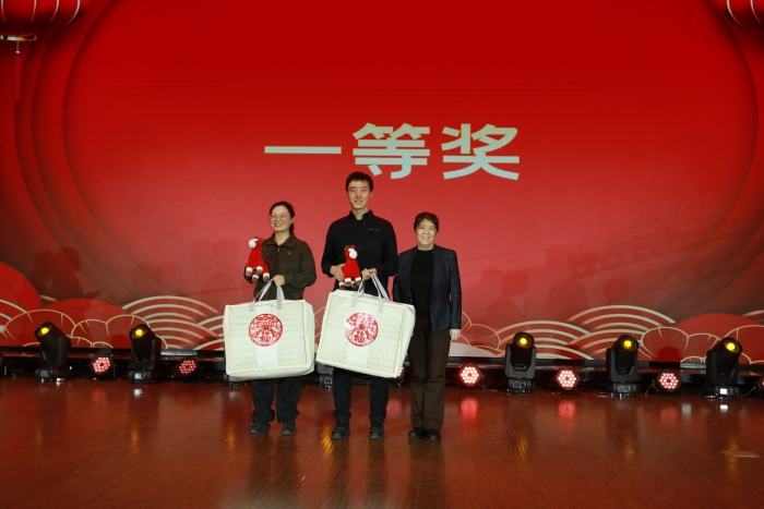校领导现场抽取幸运观众,为教职工们送上新年的祝福